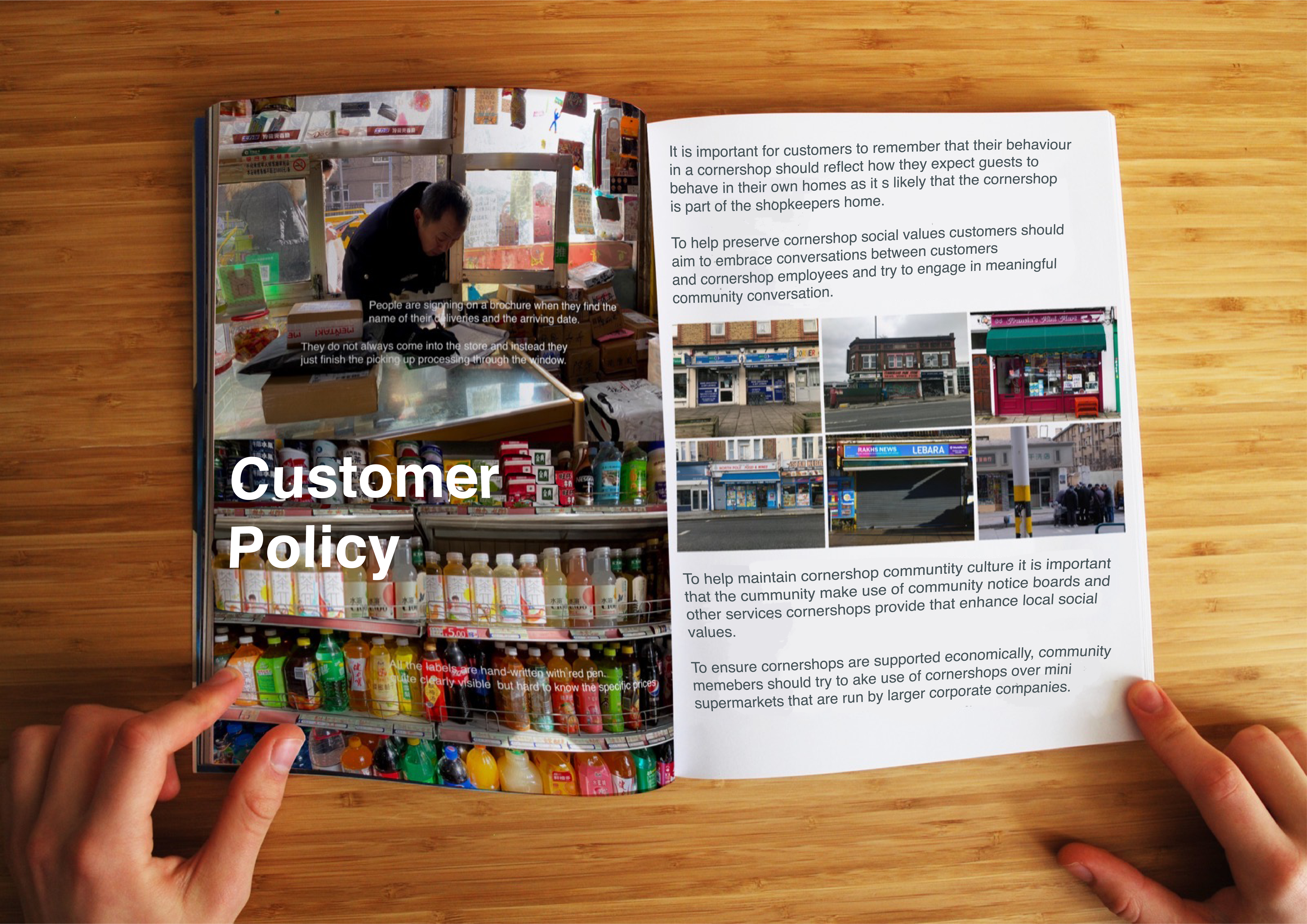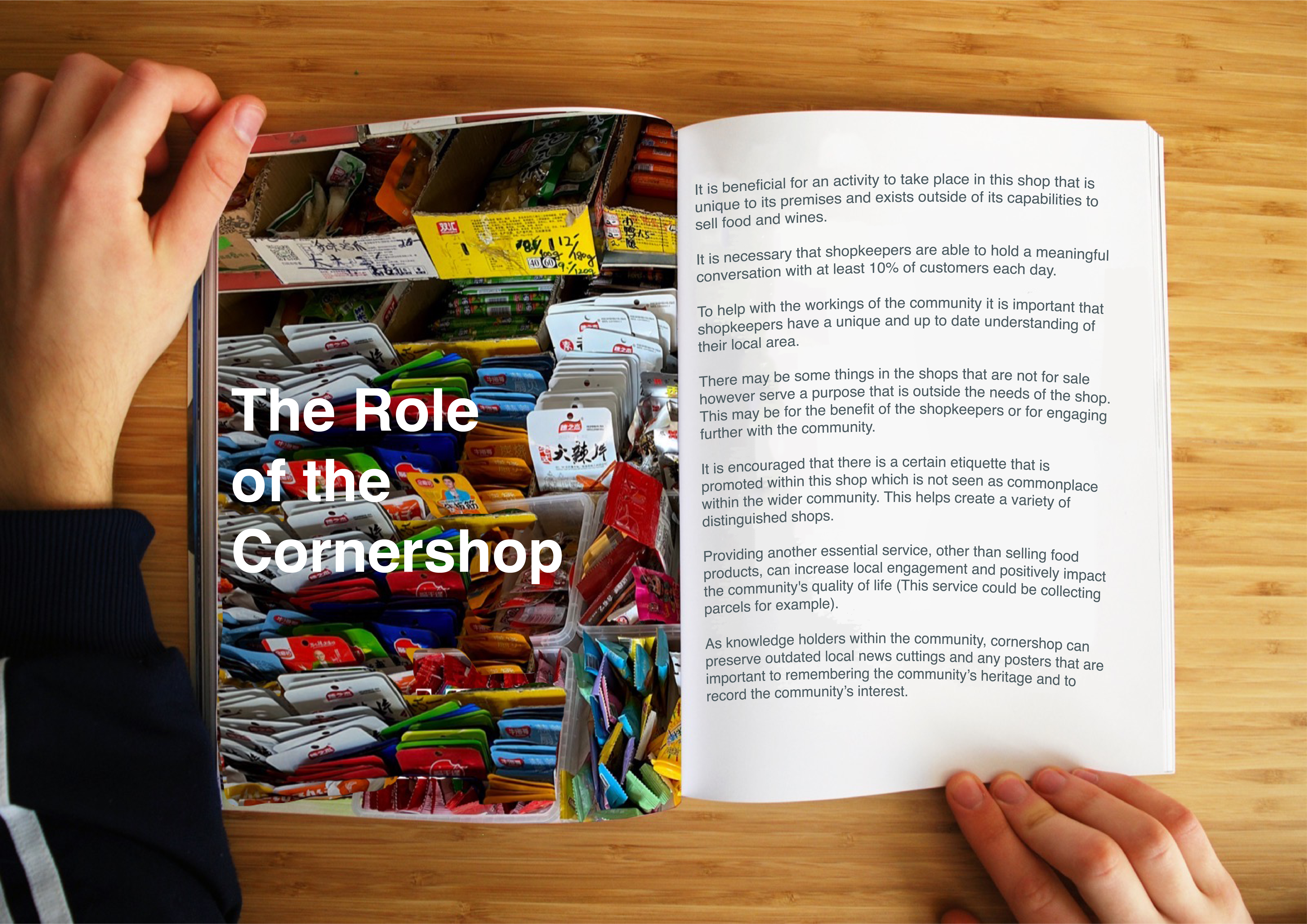 In collaboration with corner shops and the community in South-East London, we created a book of cornershop policy, documenting the culture and value of corner shops within our community and a guide that can be used to help preserve elements that are important.