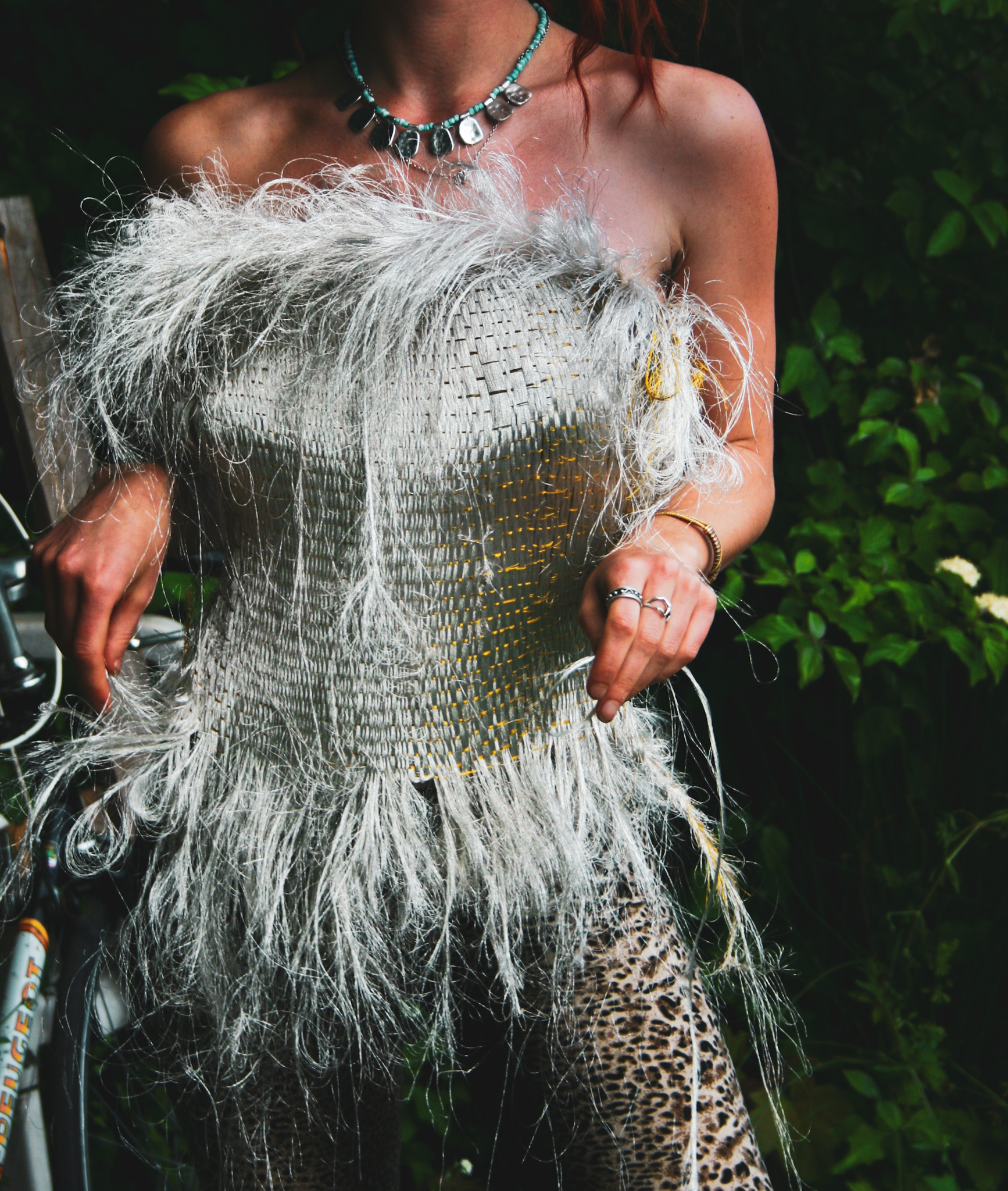Made up of thousands of silver threads, this hand woven corset disrupts the cell phone signal of the wearer making it impossible to make or receive calls whilst wearing this garment. This work explores what it means to interact with and regain agency over ‘the invisibile’ that is all around us.
